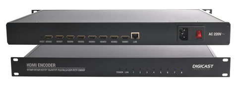 Digicast multiscreen multiprotocol series IPTV Encoder are designed to address the increasing demand for video delivery to Internet and mobile devices. DMB-8908pro-EC H.265/H.264 HD 8 Channel IPTV Encoder supports HD/SD audio and video collection by 8-Ch HD HDMI input. For HDM input, each channel of HDMI input supports output 2 groups IP streams with two different resolution and two different bitrates to meet different size screen and different bandwidth condition. Each group of IP stream supports kinds of main protocols output (HLS, SRT, RTMP, HTTP, RTSP, UDP), this enable Encoder to deliver H.265/H.264 IP streams by independent IP output to various servers for IPTV & OTT application. Such as Facebook Server, YouTube Server, Ustream Server, Adobe Flash Server, Wowza Media Server, Windows Media Server and some other servers based on SRT/HLS/UDP/RTSP/ RTMP/HTTP/ONVIF protocols. Moreover, providing username, password matching function which required from destination server, to avoid the streaming which does not authorized.