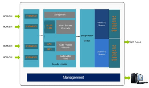 - Support up to 4 TS over IP stream out each HDMI/SDI channel