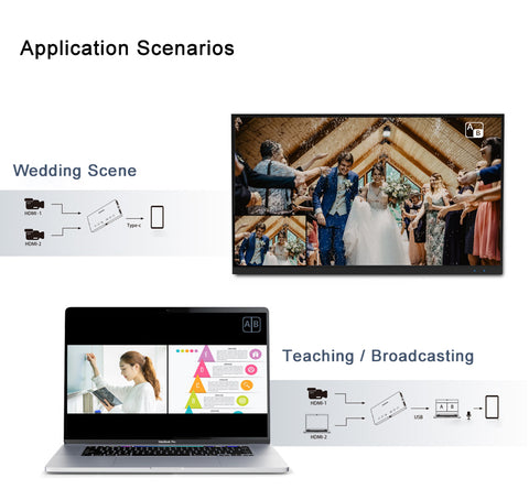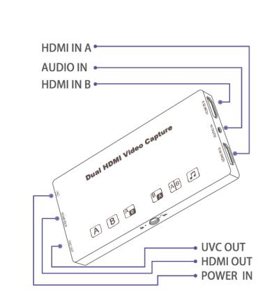 Dual HDMI video capture is a Full HD video and audio high-performance record /playback through USB-C and PGM output, capturing dual HDMI input and one-way analog audio input. It has a built-in audio mixer function, allowing users to toggle between different audio settings and three audio inputs. Based on UVC (Universal Video Class) standard, the device features a laptop/mobile phone or live broadcast software fast connection with the system-supplied driver. Moreover, its lightweight design and intuitive.FEATURES