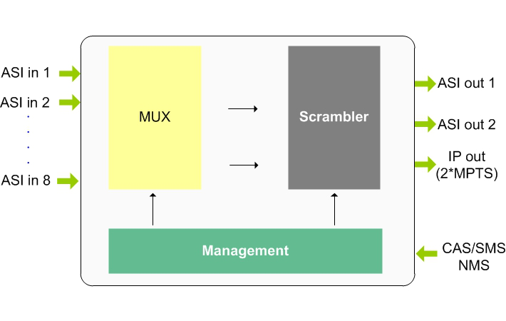- Fully comply with DVB common scrambling system description ETR289, simulcrypt standard ETSI 101 197 and ETSI 103 197